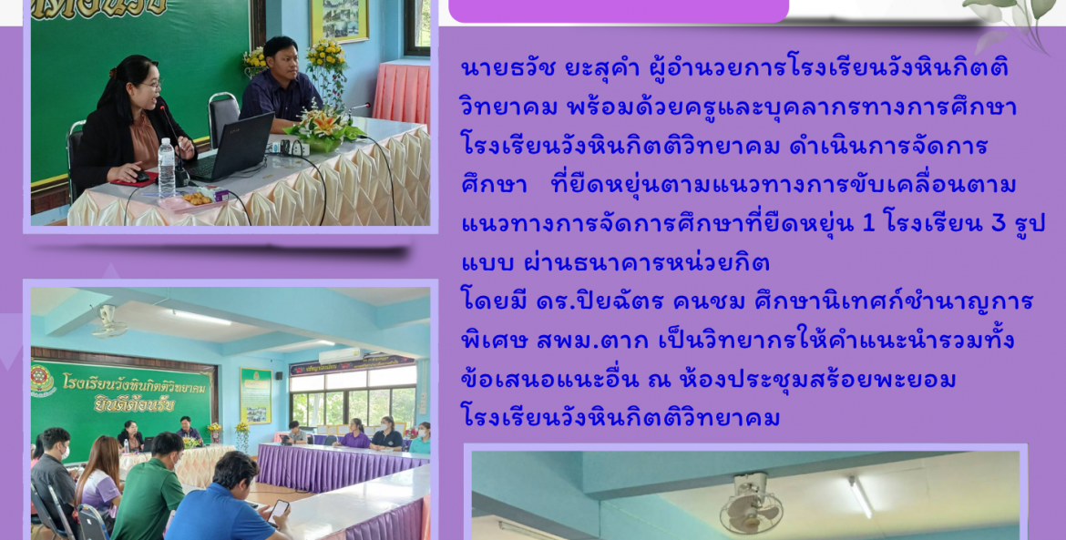 นายธวัช ยะสุคำ ผู้อำนวยการโรงเรียนวังหินกิตติวิทยาคม พร้อมด้วยครูและบุคลากรทางการศึกษาโรงเรียนวังหินกิตติวิทยาคม ดำเนินการจัดการศึกษา ที่ยืดหยุ่นตามแนวทางการขับเคลื่อนตามแนวทาง #การจัดการศึกษาที่ยืดหยุ่น1โรงเรียน3รูปแบบผ่านธนาคารหน่วยกิต
