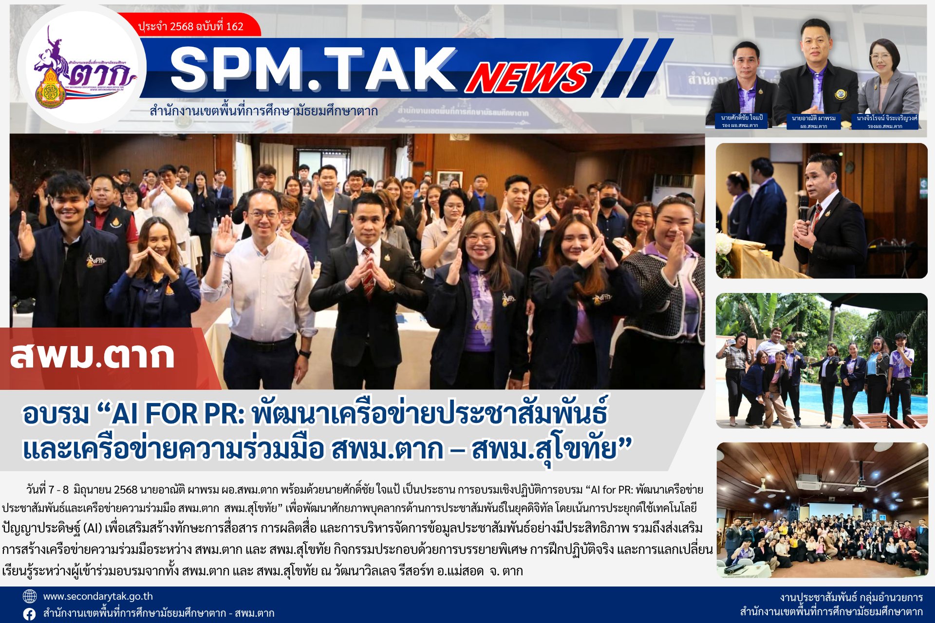 อบรม “AI FOR PR: พัฒนาเครือข่ายประชาสัมพัมพันธ์ และเครือข่ายความร่วมมือ สพม.ตาก – สพม.สุโขทัย” วรวุฒิ เนื้อนิ่ม 9 มิถุนายน 2568 จำนวนคนดู 8