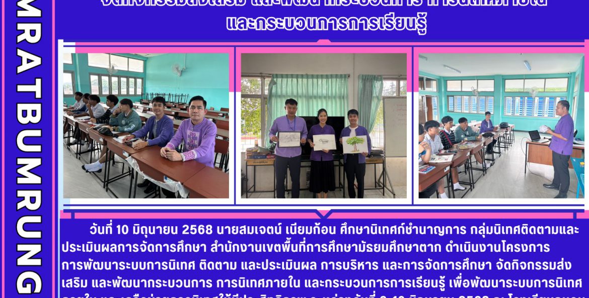 วันที่ 10 มิถุนายน 2568 นายสมเจตน์ เนียมก้อน ศึกษานิเทศก์ชำนาญการ กลุ่มนิเทศติดตามและประเมินผลการจัดการศึกษา สำนักงานเขตพื้นที่การศึกษามัธยมศึกษาตาก ดำเนินงานโครงการ การพัฒนาระบบการนิเทศ ติดตาม และประเมินผล การบริหาร และการจัดการศึกษา จัดกิจกรรมส่งเสริม และพัฒนากระบวนการ การนิเทศภายใน และกระบวนการการเรียนรู้ เพื่อพัฒนาระบบการนิเทศภายใน และเครือข่ายการนิเทศให้มีประสิทธิภาพ ระหว่างวันที่ 9-10 มิถุนายน 2568 ณ โรงเรียนถนอมราษฎร์บำรุง