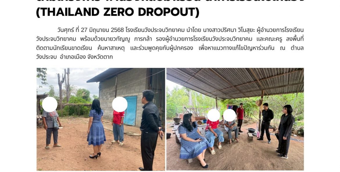 โรงเรียนวังประจบวิทยาคม ดำเนินการติดตามน้องกลับมาเรียน มธุรส ฟักทองอยู่ 14 กรกฎาคม 2568 https://www.facebook.com/photo?fbid=1320904226710675&set=a.473773144757125&locale=th_TH จำนวนคนดู 0