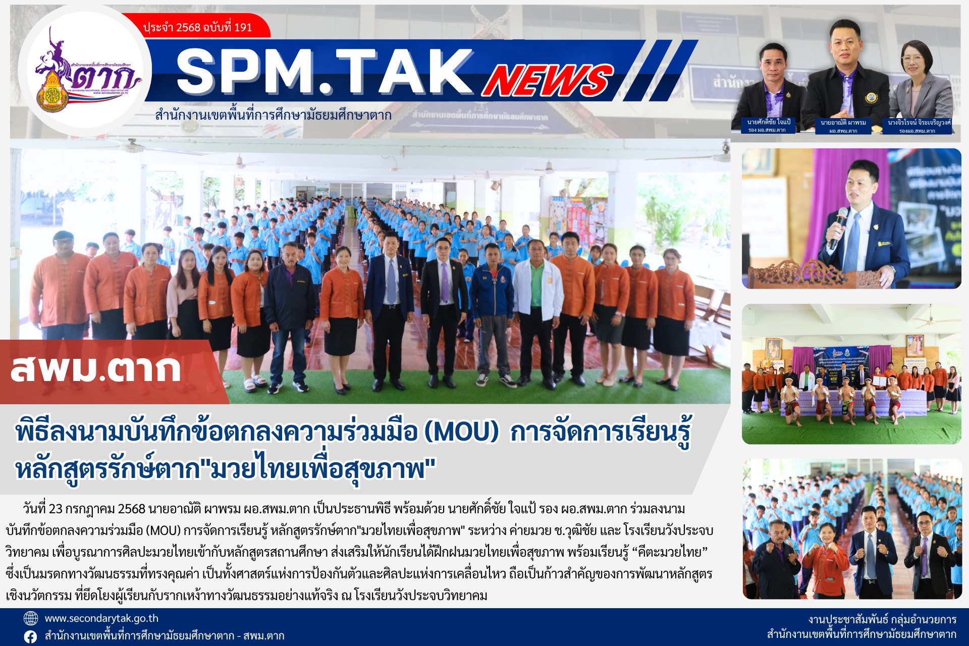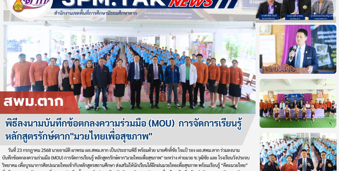 (MOU) การจัดการเรียนรู้หลักสูตร “รักษ์ตาก: มวยไทยเพื่อสุขภาพ” วรวุฒิ เนื้อนิ่ม 24 กรกฎาคม 2568 จำนวนคนดู 3