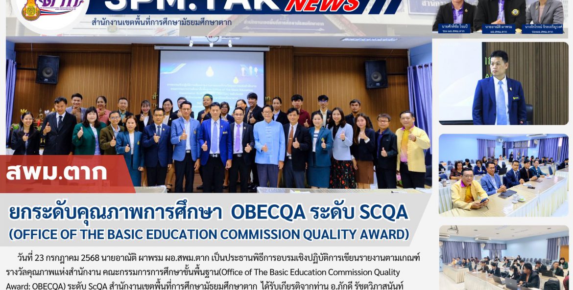 ยกระดับคุณภาพการศึกษา OBECQA ระดับ SCQA (OFFICE OF THE BASIC EDUCATION COMMISSION QUALITY AWARD) วรวุฒิ เนื้อนิ่ม 24 กรกฎาคม 2568 จำนวนคนดู 1