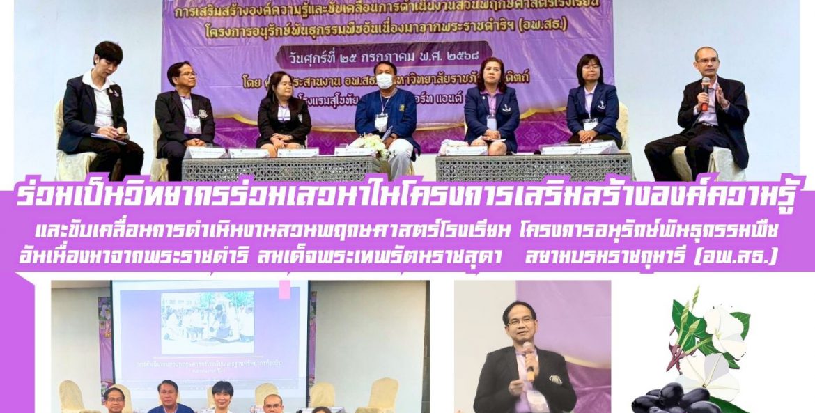 วันที่ 25 กรกฎาคม 2568 นายสนั่น วงษ์ดี ผู้อำนวยการโรงเรียนผดุงปัญญา พร้อมด้วยนางสาวรัชยา สอนแก้ว หัวหน้างานสวนพฤกษศาสตร์โรงเรียน เข้าร่วมเป็นวิทยากรร่วมเสวนาในโครงการเสริมสร้างองค์ความรู้และขับเคลื่อนการดำเนินงานสวนพฤกษศาสตร์โรงเรียน โครงการอนุรักษ์พันธุกรรมพืชอันเนื่องมาจากพระราชดำริ สมเด็จพระเทพรัตนราชสุดาฯ สยามบรมราชกุมารี (อพ.สธ.) ณ ห้องประชุม โรงแรมสุโขทัย เทรเชอร์ รีสอร์ท แอนด์ สปา อำเภอเมืองสุโขทัย จังหวัดสุโขทัย