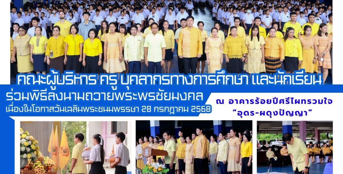 วันที่ 25 กรกฎาคม 2568 นายสนั่น วงษ์ดี ผู้อำนวยการโรงเรียนผดุงปัญญา ได้นำคณะผู้บริหาร ครู บุคลากรทางการศึกษา และนักเรียน ร่วมพิธีลงนามถวายพระพรชัยมงคล พระบาทสมเด็จพระปรเมนทรรามาธิบดีศรีสินทรมหาวชิราลงกรณ พระวชิรเกล้าเจ้าอยู่หัว เนื่องวโรกาสวันเฉลิมพระชนมพรรษา 28 กรกฎาคม 2568 เพื่อแสดงความจงรักภักดีและสำนึกในพระมหากรุณาธิคุณอย่างหาที่สุดมิได้