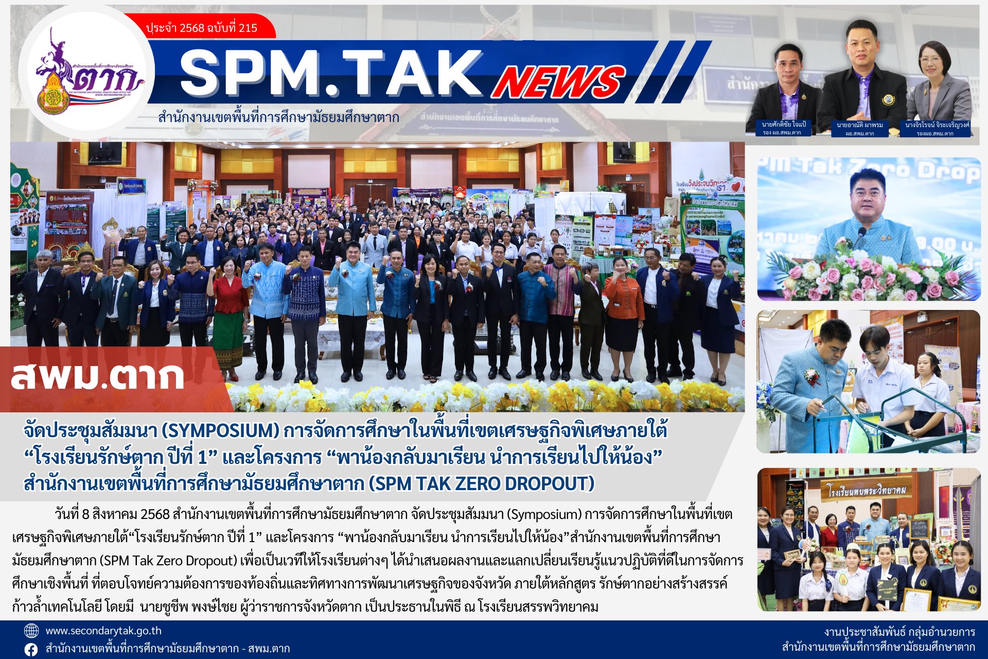 จัดประชุมสัมมนา (SYMPOSIUM) การจัดการศึกษาในพื้นที่เขตเศรษฐกิจพิเศษภายใต้ “โรงเรียนรักษ์ตาก ปีที 1” และโครงการ “พาน้องกลับมาเรียน นำการเรียนไปให้น้อง” สำนักงานเขตพื้นที่การศึกษามัธยมศึกษาตาก (SPM TAK ZERO DROPOUT) วรวุฒิ เนื้อนิ่ม 9 สิงหาคม 2568 จำนวนคนดู 7