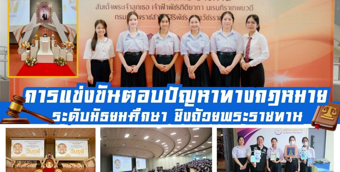 วันที่ 24 สิงหาคม 2568 ครูกลุ่มสาระการเรียนรู้สังคมศึกษา ศาสนา และวัฒนธรรม นำนักเรียนเข้าร่วมการแข่งขันตอบปัญหาทางกฎหมาย ระดับมัธยมศึกษา ชิงถ้วยพระราชทาน สมเด็จพระเจ้าลูกเธอ เจ้าฟ้าพัชรกิติยาภา นเรนทิราเทพยวดี กรมหลวงราชสาริณีสิริพัชร มหาวัชรราชธิดา เนื่องในวันรพี น้อมรำลึกพระบิดาแห่งกฎหมายไทย ประจำปี 2568 ณ ห้อง UB003 อาคาร 99 ปี พระอุบาลีคุณูปมาจารย์ (ปวง ธมฺมปญฺโญ) มหาวิทยาลัยพะเยา จังหวัดพะเยา