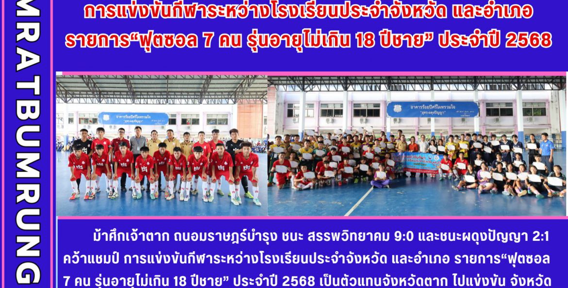 คว้าแชมป์…การแข่งขัน ฟุตซอลกีฬานักเรียนระหว่างจังหวัด และอำเภอประจำ 2568 พันธกานต์ อุจจภูรี 22 กันยายน 2568 คว้าแชมป์แล้วจ้า ม้าศึกเจ้าตาก ถนอมราษฎร์บำรุง FC เอาชนะสรรพวิทยาคม 9:0 เข้าชิงกับ ผดุงปัญญา เอาชนะไปได้ 2:1 เป็นคู่ชิงที่สมศักดิ์ศรีมาก สนุกสุดๆ สุดท้ายถนอมราษฎร์บำรุงเอาชนะมาได้ ทำให้คว้าแชมป์…การแข่งขัน ฟุตซอลกีฬานักเรียนระหว่างจังหวัด และอำเภอประจำ 2568 เป็นตัวแทนไปแข่งระดับภาคที่ จ.สุโขทัย ต่อไป ค่ะ ขอบคุณผอ ท่านรอง โค๊ชบัง ครู นักกีฬา กองเชียร์ทุกคนนะคะ #เป็นกำลังใจให้ทั้งนักกีฬาและโค้ช สู้ต่อไปค่ะ จำนวนคนดู 1