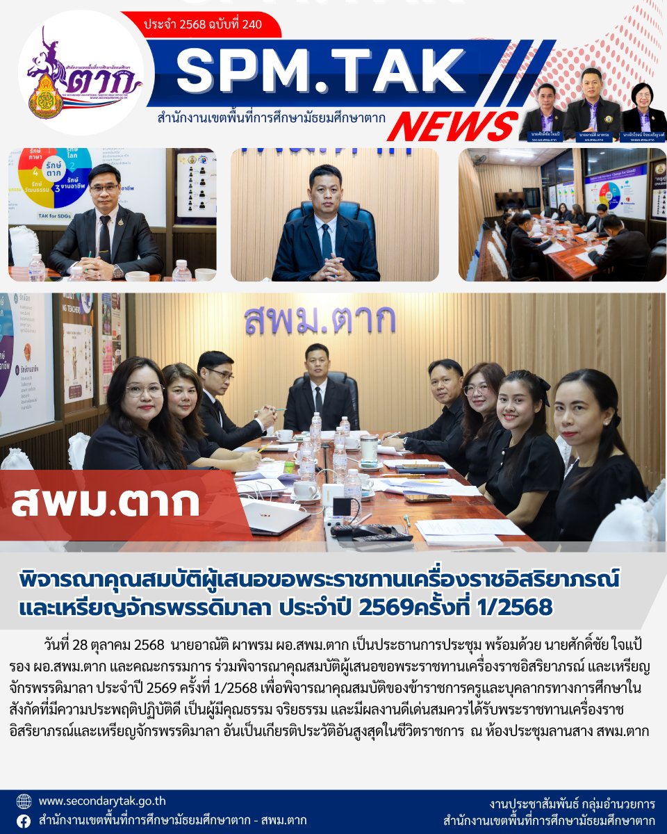 พิจารณาคุณสมบัติผู้เสนอขอพระราชทานเครื่องราชอิสริยาภรณ์ และเหรียญจักรพรรดิมาลา ประจำปี 2569 ครั้งที่ 1/2568 วรวุฒิ เนื้อนิ่ม 28 ตุลาคม 2568 จำนวนคนดู 5