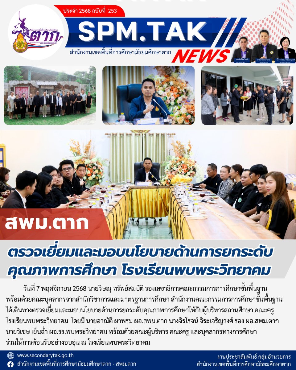 ตรวจเยี่ยมและมอบนโยบายด้านการยกระดับ คุณภาพการศึกษา โรงเรียนพบพระวิทยาคม วรวุฒิ เนื้อนิ่ม 8 พฤศจิกายน 2568 จำนวนคนดู 1