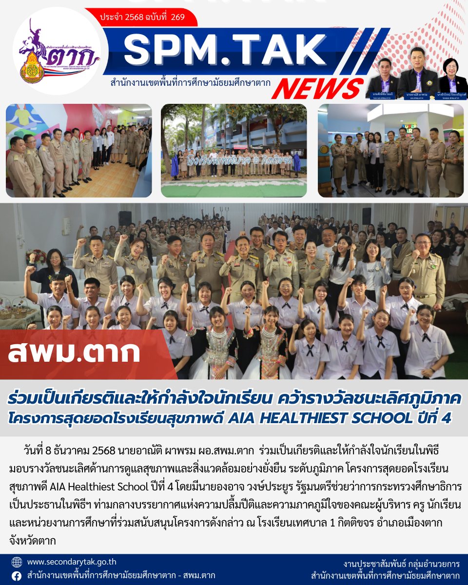 ร่วมเป็นเกียรติและให้กำลังใจนักเรียน คว้ารางวัลชนะเลิศภูมิภาค โครงการสุดยอดโรงเรียนสุขภาพดี AIA HEALTHIEST SCHOOL ปีที่ 4 วรวุฒิ เนื้อนิ่ม 8 ธันวาคม 2568 จำนวนคนดู 7