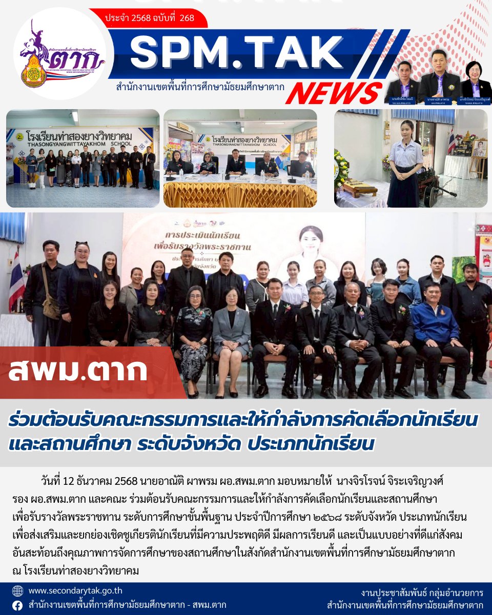 ร่วมต้อนรับคณะกรรมการและให้กำลังการคัดเลือกนักเรียน และสถานศึกษา ระดับจังหวัด ประเภทนักเรียน วรวุฒิ เนื้อนิ่ม 13 ธันวาคม 2568 จำนวนคนดู 1
