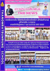 วันจันทร์ที่ 22 ธันวาคม 2568 นายสุบิน สีขาว ผู้อำนวยการโรงเรียนถนอมราษฎร์บำรุง มอบถ้วยรางวัล ให้กับนักเรียนห้องเรียนกีฬา (ม้าศึกเจ้าตาก) ได้รับรางวัลทั้งหมด 4 รายการ การแข่งขันฟุตบอล 7 คน BANTAK CUP 2025 ณ สนามฟุตบอล เทศบาลบ้านตาก จ.ตาก พร้อมให้โอวาท กล่าวชื่นชม และให้กำลังใจนักกีฬา โค้ชผู้ฝึกสอน ที่ได้สร้างชื่อเสียงให้กับโรงเรียน