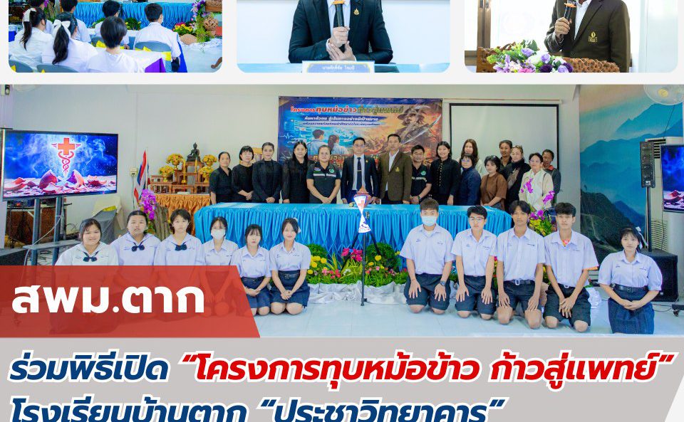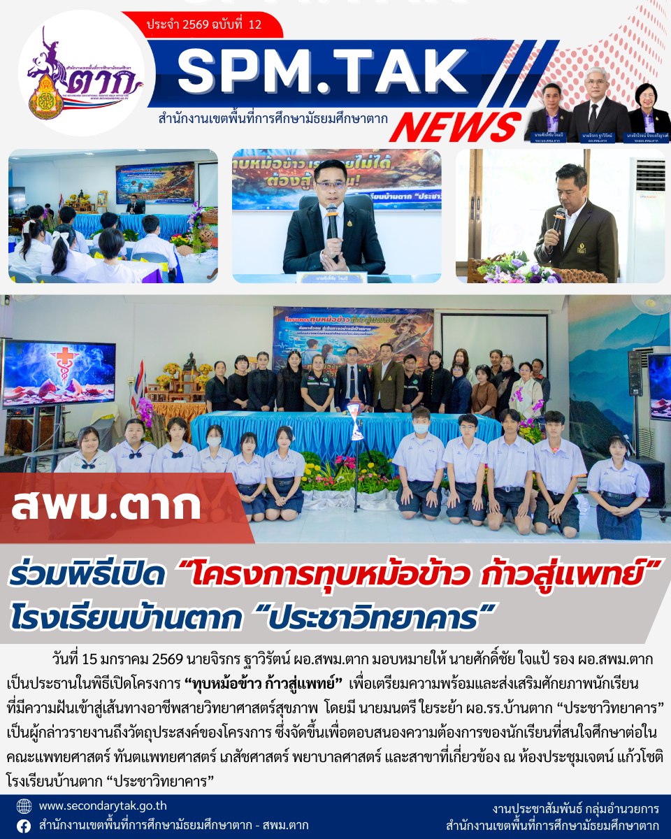 ร่วมพิธีเปิด “โครงการทุบหม้อข้าว ก้าวสู่แพทย์” โรงเรียนบ้านตาก “ประชาวิทยาคาร” วรวุฒิ เนื้อนิ่ม 15 มกราคม 2569 จำนวนคนดู 2