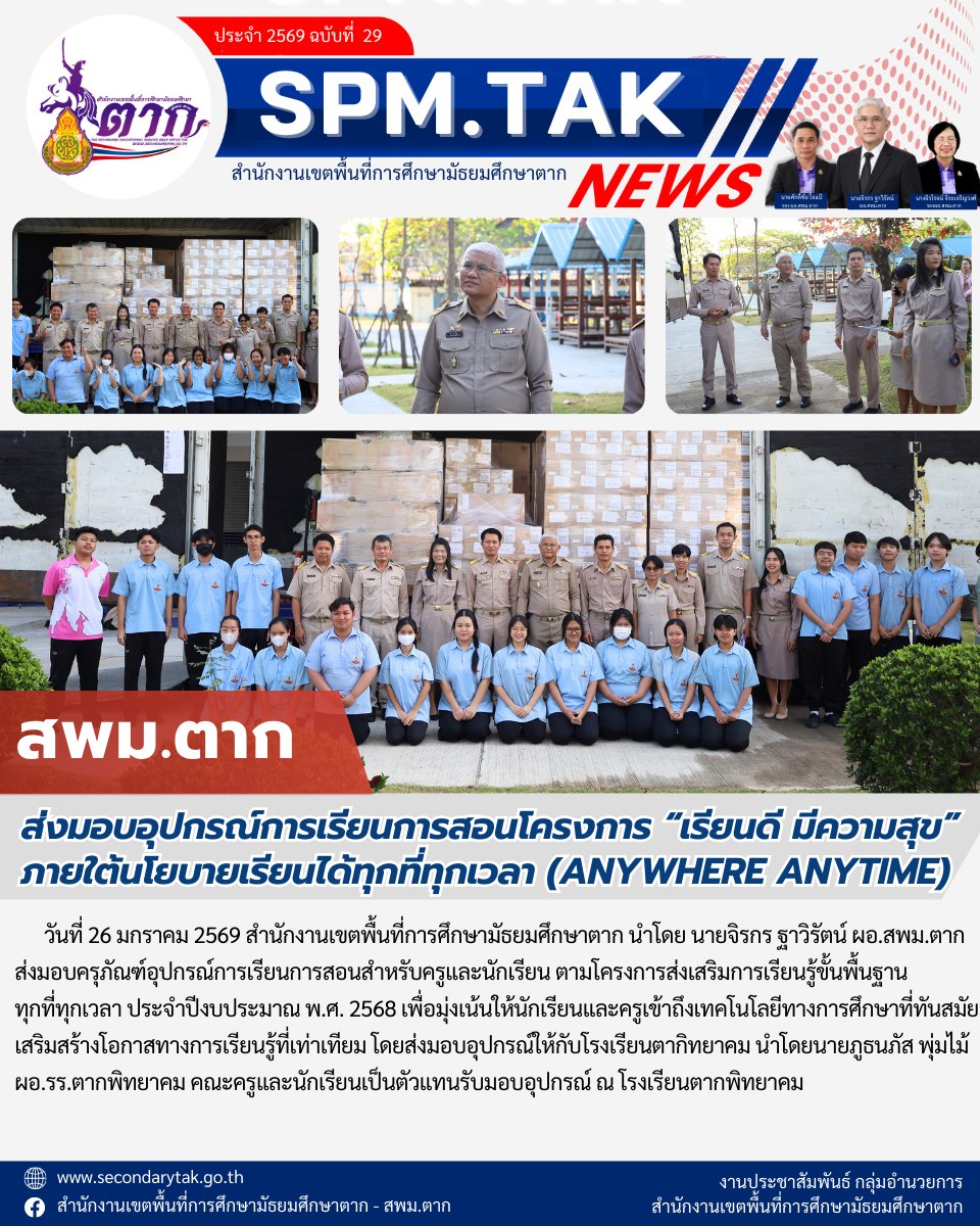 ส่งมอบอุปกรณ์การเรียนการสอนโครงการ “เรียนดี มีความสุข” ภายใต้นโยบายเรียนได้ทุกที่ทุกเวลา (ANYWHERE ANYTIME) ร.ร.ตากพิทยาคม วรวุฒิ เนื้อนิ่ม 27 มกราคม 2569 จำนวนคนดู 0