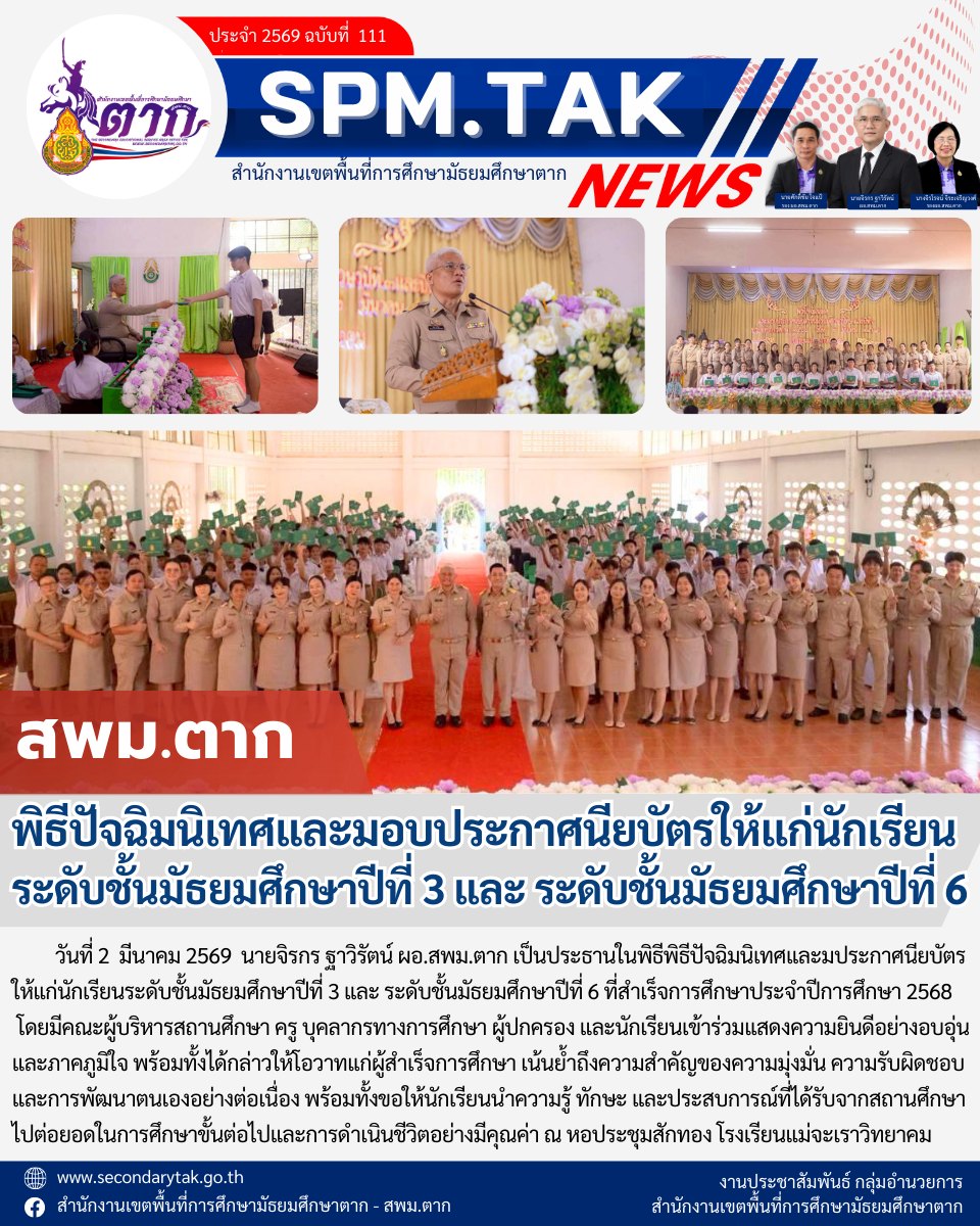 พิธีปัจฉิมนิเทศและมอบประกาศนียบัตรให้แก่นักเรียน ระดับชั้นมัธยมศึกษาปีที่ 3 และ ระดับชั้นมัธยมศึกษาปีที่ 6 วรวุฒิ เนื้อนิ่ม 3 มีนาคม 2569 จำนวนคนดู 0