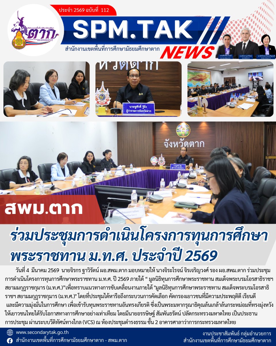 ร่วมประชุมการดำเนินโครงการทุนการศึกษา พระราชทาน ม.ท.ศ. ประจำปี 2569 วรวุฒิ เนื้อนิ่ม 5 มีนาคม 2569 จำนวนคนดู 0