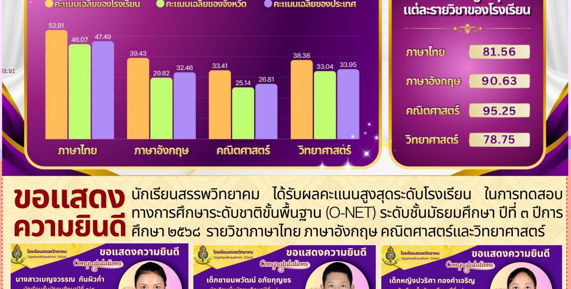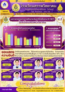 โรงเรียนสรรพวิทยาคม : รายงานผลการทดสอบทางการศึกษาระดับชาติ (O-NET) ระดับชั้น ม.๓ ปีการศึกษา ๒๕๖๘ นิรมล พิพัฒน์คุปติกุล 14 มีนาคม 2569 จำนวนคนดู 0