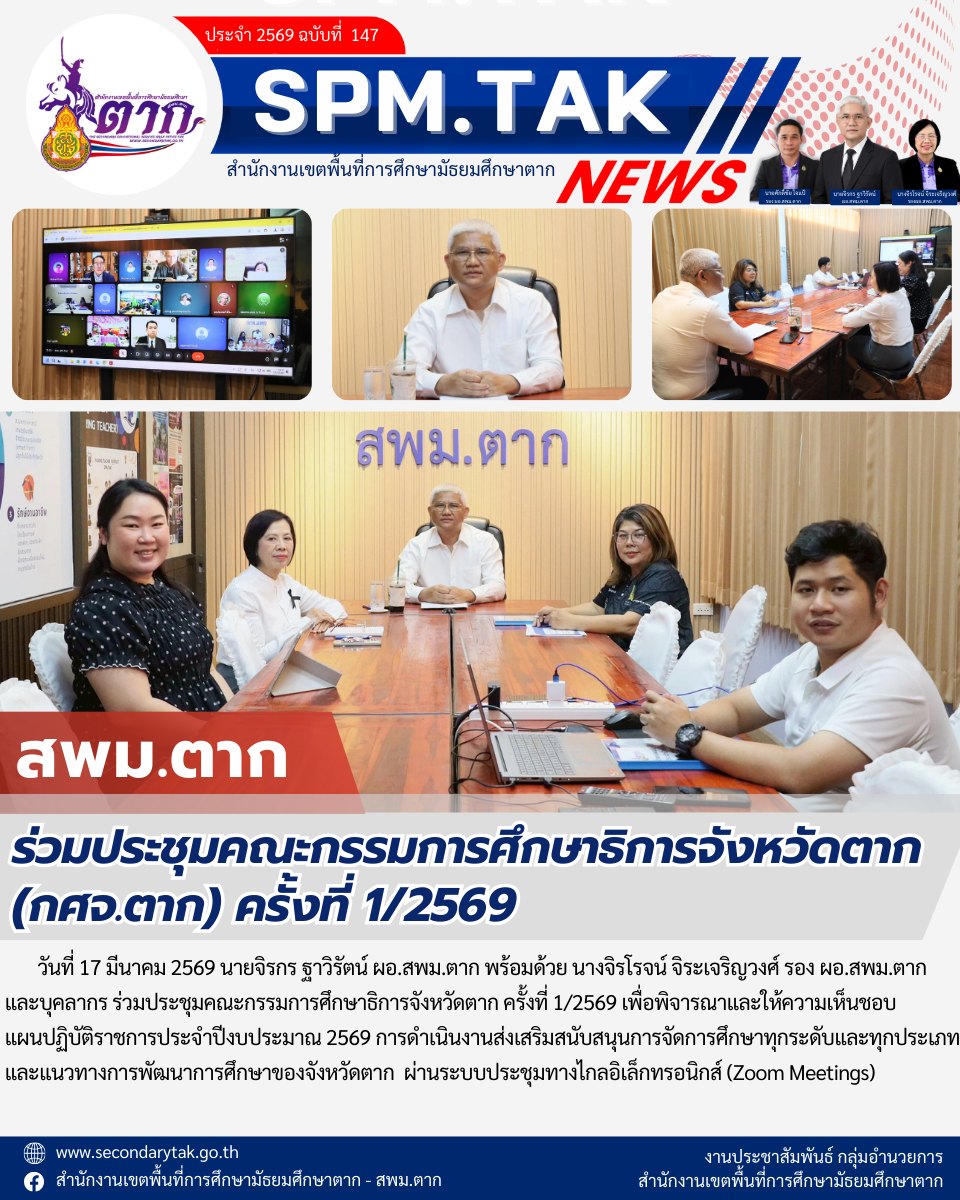ร่วมประชุมคณะกรรมการศึกษาธิการจังหวัดตาก (กศจ.ตาก) ครั้งที่ 1/2569 วรวุฒิ เนื้อนิ่ม 17 มีนาคม 2569 จำนวนคนดู 0
