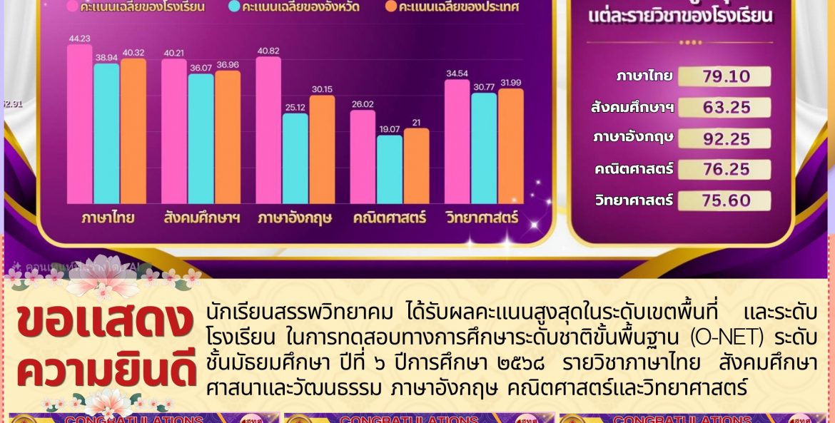 โรงเรียนสรรพวิทยาคม : ผลการทดสอบระดับชาติขั้นพื้นฐาน (O-NET) ระดับชั้น ม.๖ ปีการศึกษา ๒๕๖๘ นิรมล พิพัฒน์คุปติกุล 26 มีนาคม 2569 จำนวนคนดู 0