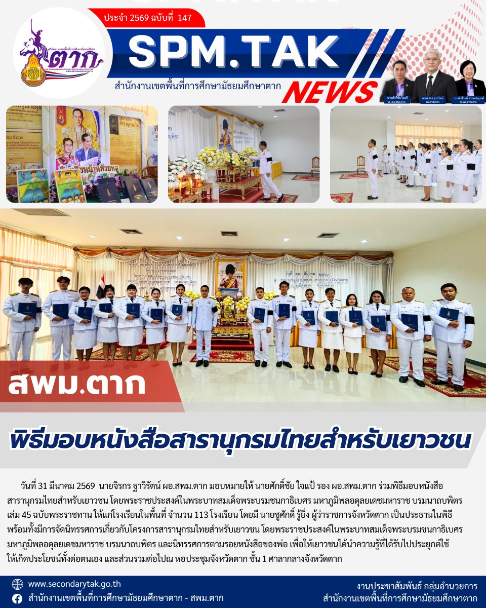 นโยบายและจุดเน้นของ สพม.ตาก ประจำปีงบประมาณ 2568-2569