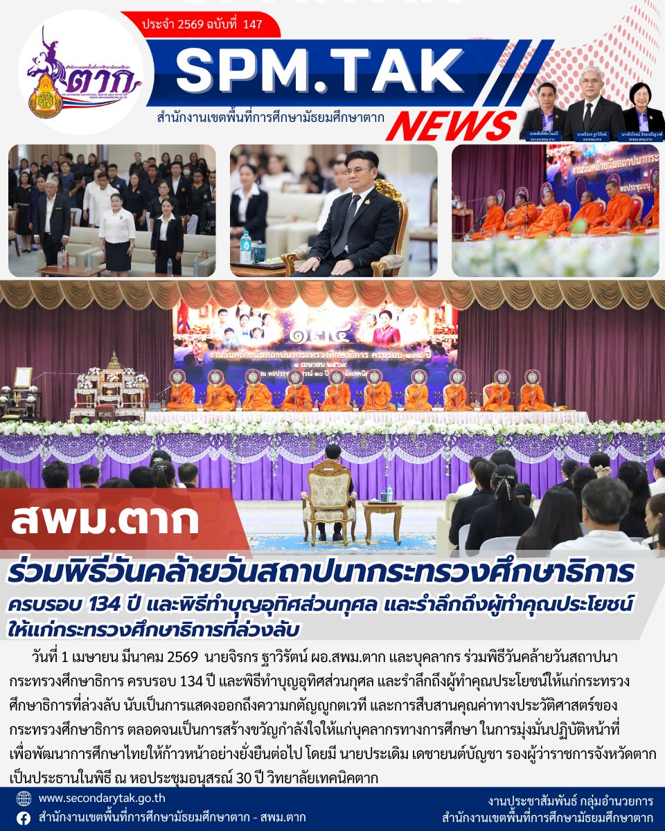 ร่วมพิธีวันคล้ายวันสถาปนากระทรวงศึกษาธิการ ครบรอบ 134 ปี และพิธีทำบุญอุทิศส่วนกุศล และรำลึกถึงผู้ทำคุณประโยชน์ ให้แก่กระทรวงศึกษาธิการที่ล่วงลับ วรวุฒิ เนื้อนิ่ม 2 เมษายน 2569 จำนวนคนดู 0