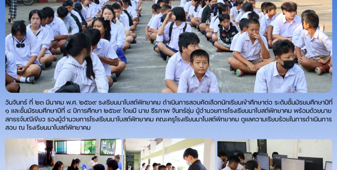 วันจันทร์ ที่ ๒๓ มีนาคม พ.ศ. ๒๕๖๙ รงเรียนนาโบสถ์พิทยาคม ดำเนินการสอบคัดเลือกนักเรียนเข้าศึกษาต่อ ระดับชั้นมัธยมศึกษาปีที่ ๑ และชั้นมัธยมศึกษาปีที่ ๔ ปีการศึกษา ๒๕๖๙ โดยมี นาย ธีรภาพ จันทร์ชุ่ม ผู้อำนวยการโรงเรียนนาโบสถ์พิทยาคม พร้อมด้วยนายสกรรจ์มณีเขียว รองผู้อำนวยการโรงเรียนนาโบสถ์พิทยาคม คณะครูโรงเรียนนาโบสถ์พิทยาคม ดูแลความเรียบร้อยในการดำเนินการสอบ ณ โรงเรียนนาโบสถ์พิทยาคม <iframe src=”https://www.facebook.com/plugins/post.php?href=https%3A%2F%2Fwww.facebook.com%2FNABOTPIT%2Fposts%2Fpfbid0YZT52JHoedhFfmtk36R3Vgxe4VryLePVWHGzKGosLfxGd7uZfPqQxN3j1hbKgJnXl&show_text=true&width=500″ width=”500″ height=”770″ style=”border:none;overflow:hidden” scrolling=”no” frameborder=”0″ allowfullscreen=”true” allow=”autoplay; clipboard-write; encrypted-media; picture-in-picture; web-share”></iframe>