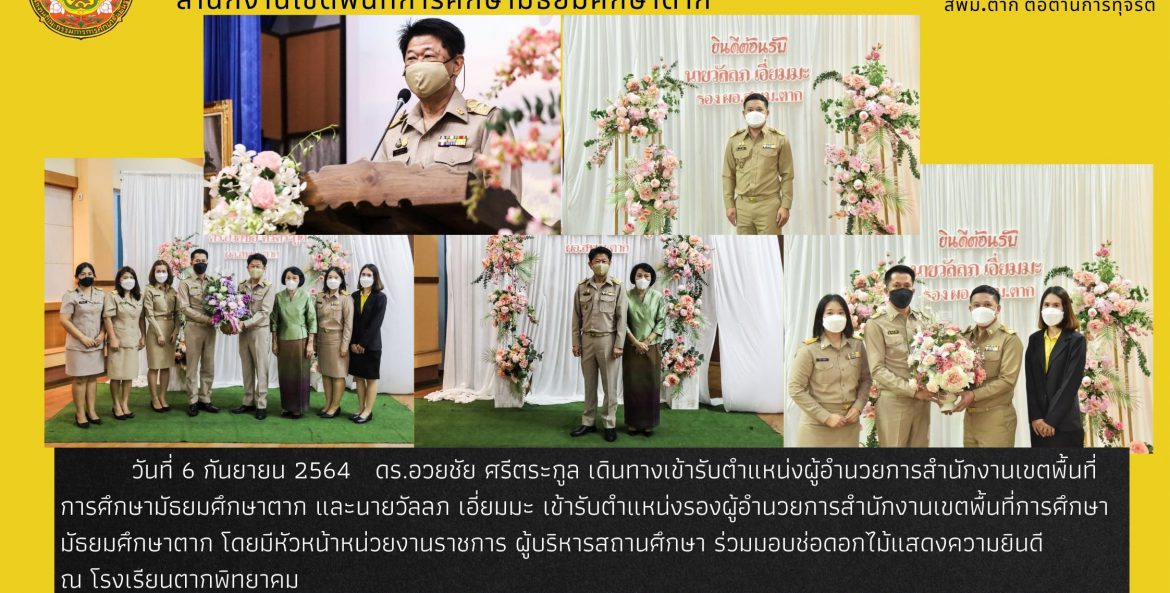โดยมีหัวหน้าหน่วยงาน ผู้บริหารสถานศึกษา ร่วมมอบช่อดอกไม้แสดงความยินดี ณ โรงเรียนตากพิทยาคม