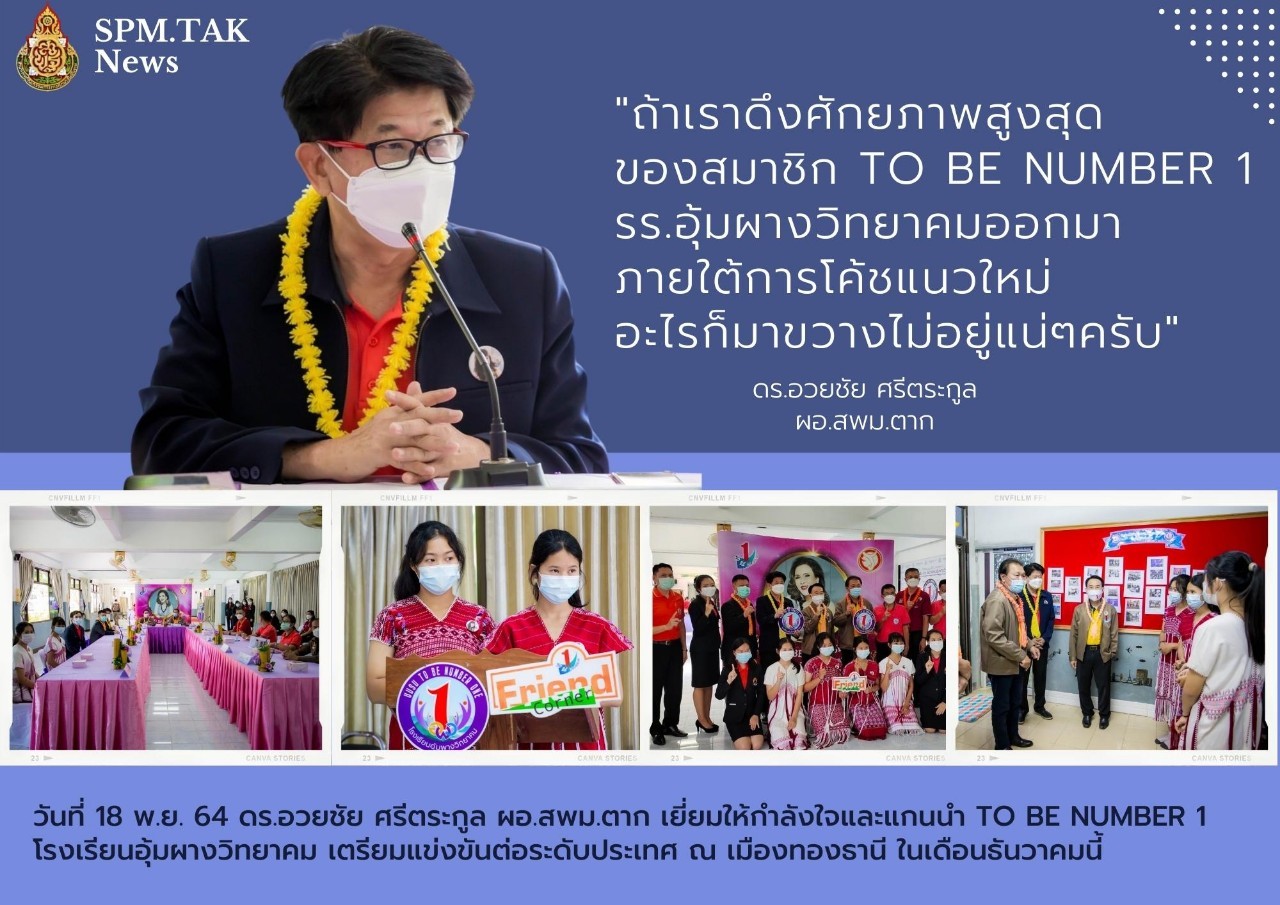 สพม.ตาก เยี่ยมให้กำลังใจและแกนนำ TO BE NUMBER 1 โรงเรียนอุ้มผางวิทยาคม วรวุฒิ เนื้อนิ่ม 23 พฤศจิกายน 2564 วันที่ 18 พ.ย. 64 ดร.อวยชัย ศรีตระกูล ผอ.สพม.ตาก เยี่ยมให้กำลังใจและแกนนำ TO BE NUMBER 1 โรงเรียนอุ้มผางวิทยาคม เตรียมแข่งขันต่อระดับประเทศ ณ เมืองทองธานี ในเดือนธันวาคมนี้ จำนวนคนดู 0