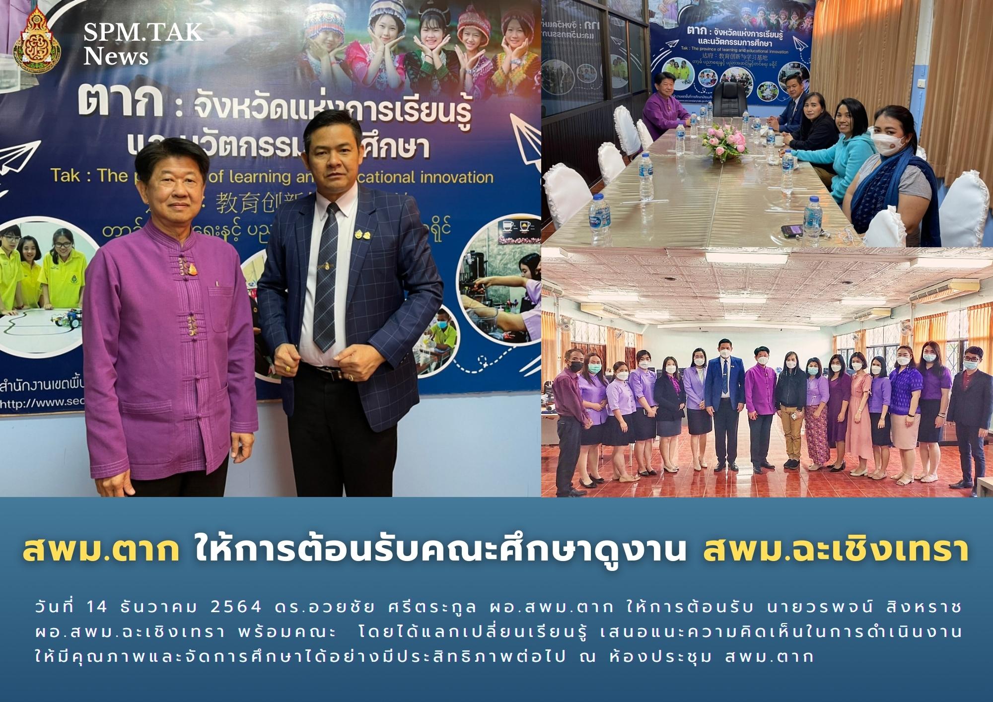 สพม.ตาก ให้การต้อนรับคณะศึกษาดูงาน สพม.ฉะเชิงเทรา วรวุฒิ เนื้อนิ่ม 14 ธันวาคม 2564 วันที่ 14 ธันวาคม 2564 ดร.อวยชัย ศรีตระกูล ผอ.สพม.ตาก ให้การต้อนรับ นายวรพจน์ สิงหราช ผอ.สพม.ฉะเชิงเทรา พร้อมคณะ โดยได้แลกเปลี่ยนเรียนรู้ เสนอแนะความคิดเห็นในการดำเนินงานให้มีคุณภาพและจัดการศึกษาได้อย่างมีประสิทธิภาพต่อไป ณ ห้องประชุม สพม.ตาก จำนวนคนดู 6