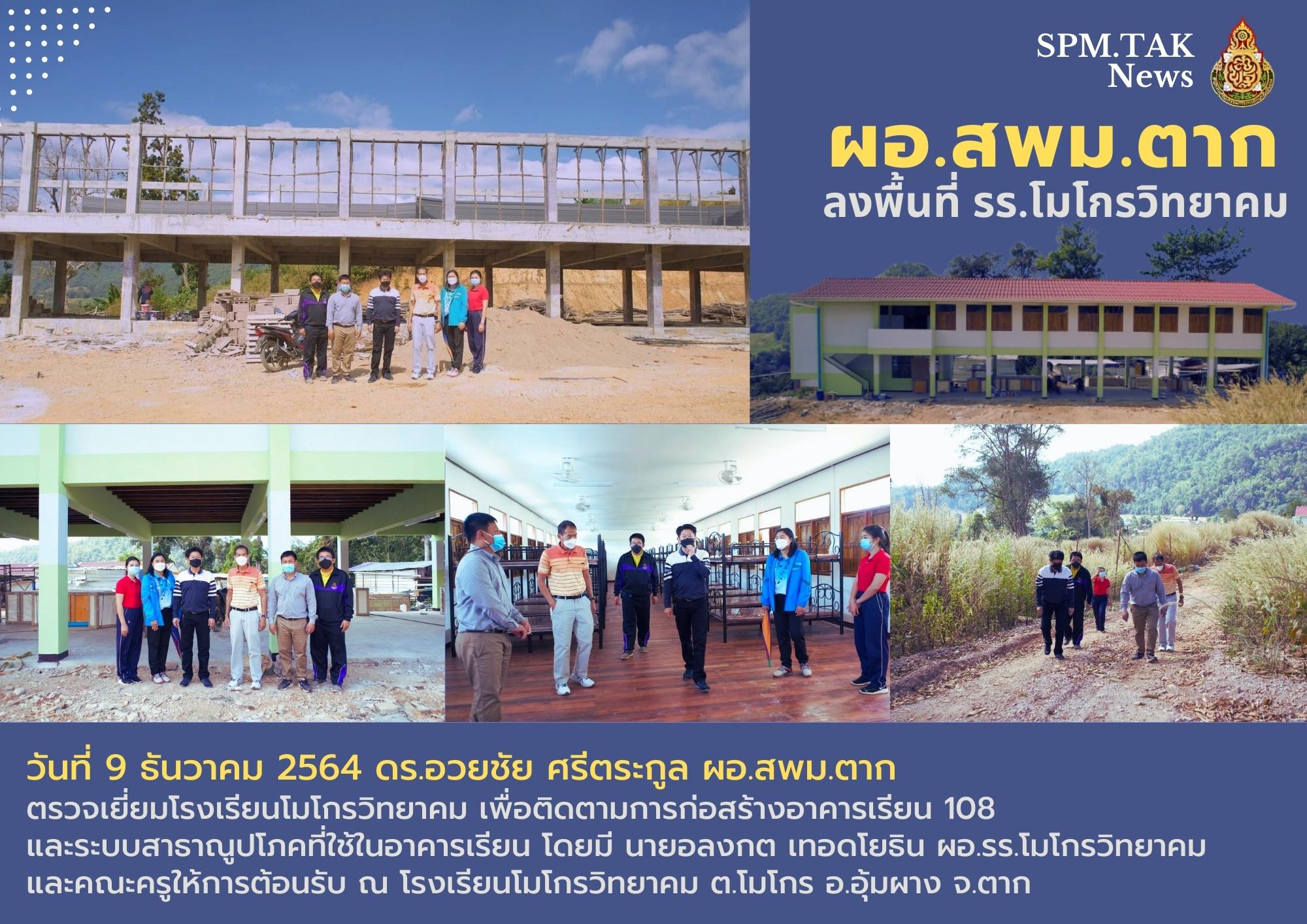 วันที่ 9 ธันวาคม 2564 ดร.อวยชัย ศรีตระกูล ผอ.สพม.ตากตรวจเยี่ยมโรงเรียนโมโกรวิทยาคม เพื่อติดตามการก่อสร้างอาคารเรียน 108 และระบบสาธาณูปโภคที่ใช้ในอาคารเรียน โดยมี นายอลงกต เทอดโยธิน ผอ.รร.โมโกรวิทยาคม และคณะครูให้การต้อนรับ ณ โรงเรียนโมโกรวิทยาคม ต.โมโกร อ.อุ้มผาง จ.ตาก