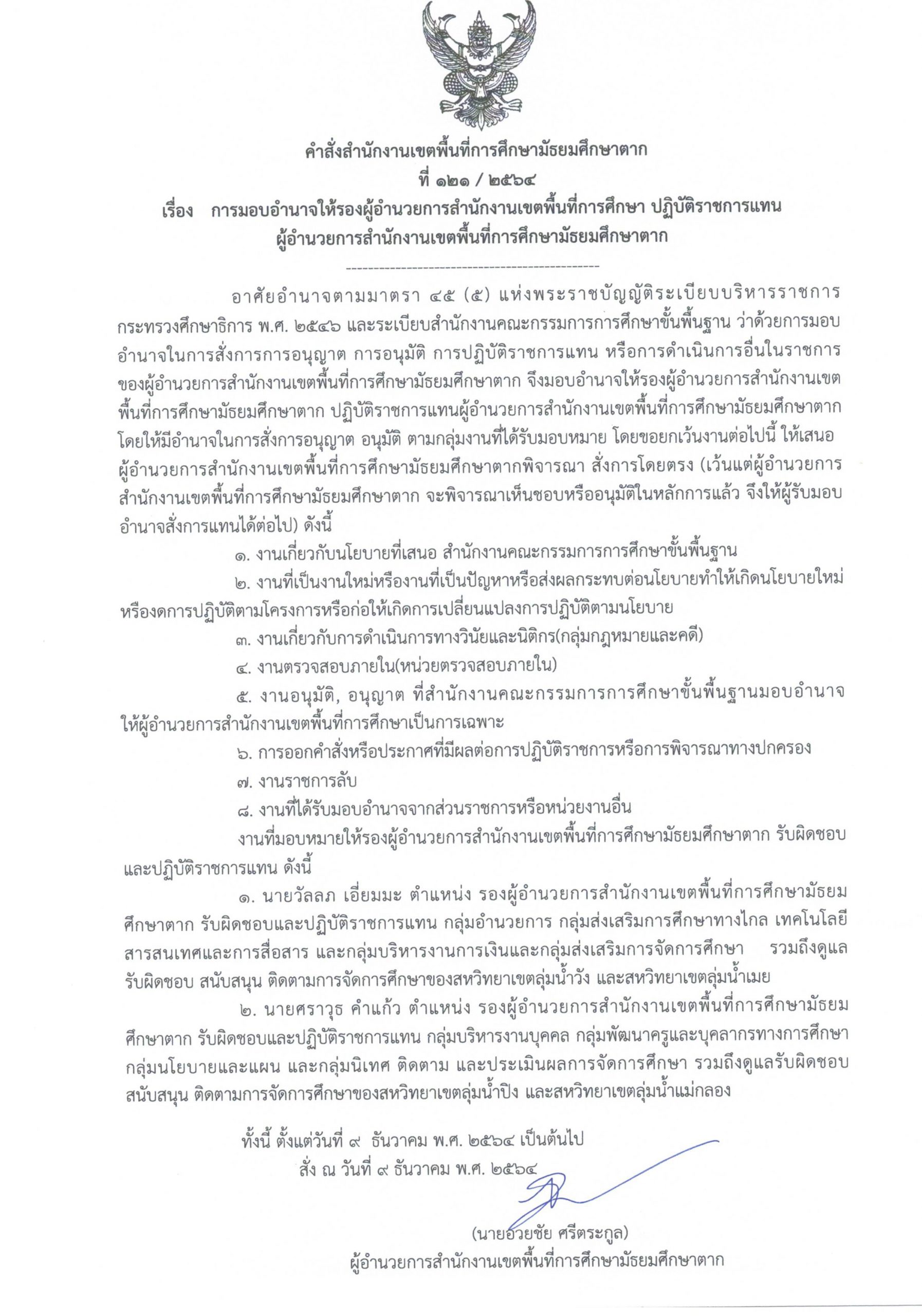 การมอบอำนาจให้รองผู้อำนวยการสำนักงานเขตพื้นที่การศึกษา ปฏิบัติราชการแทน ผู้อำนวยการสำนักงานเขตพื้นที่การศึกษามัธยมศึกษาตาก วรวุฒิ เนื้อนิ่ม 22 ธันวาคม 2564 จำนวนคนดู 109