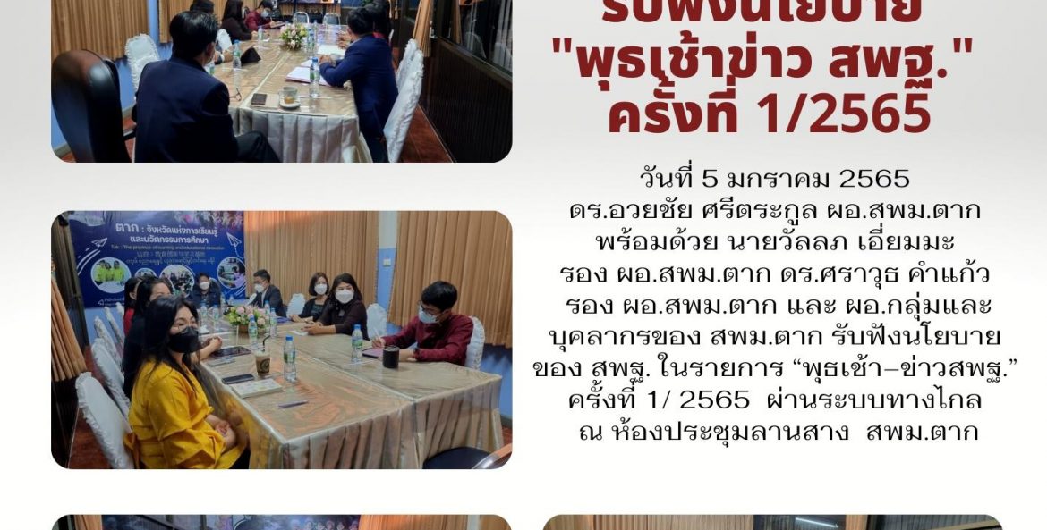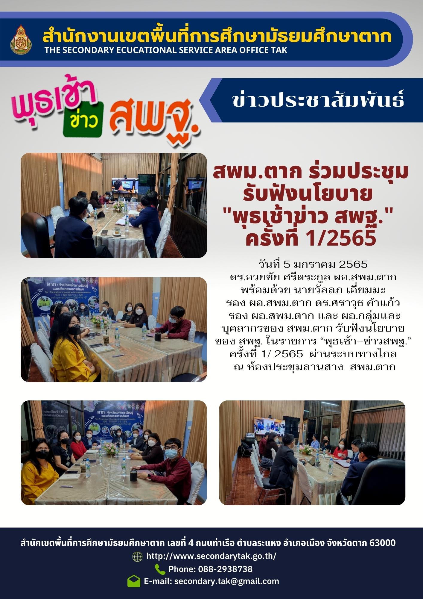 สพม.ตาก ร่วมประชุม รับฟังนโยบาย “พุธเช้าข่าว สพฐ.” ครั้งที่ 1/2565 วรวุฒิ เนื้อนิ่ม 5 มกราคม 2565 จำนวนคนดู 1
