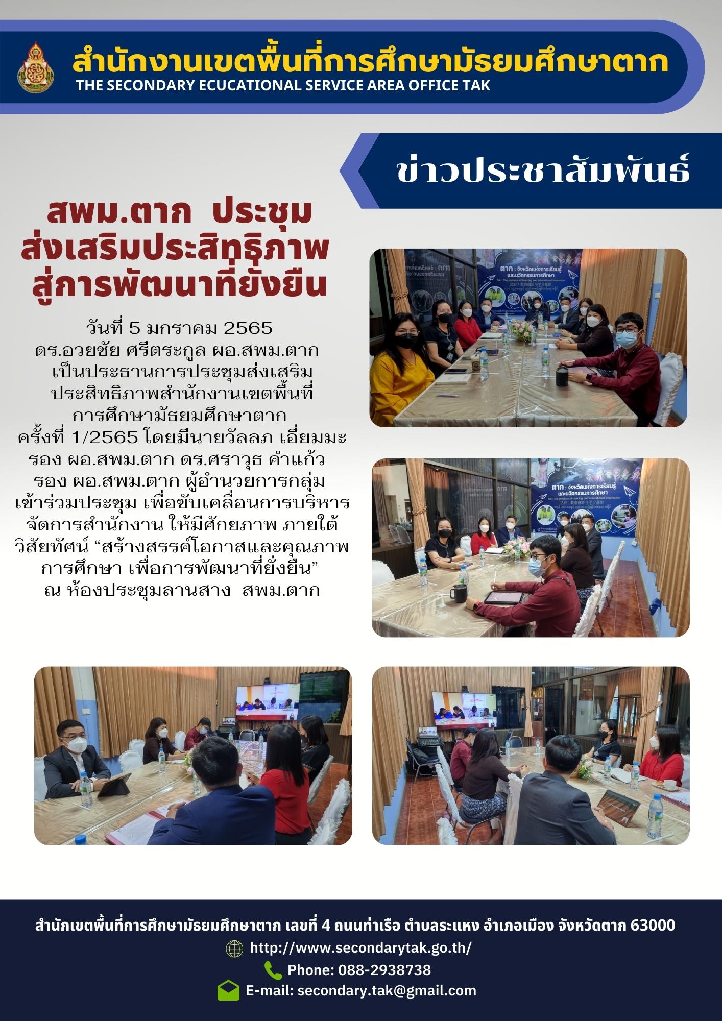 สพม.ตาก ประชุม ส่งเสริมประสิทธิภาพ สู่การพัฒนาที่ยั่งยืน