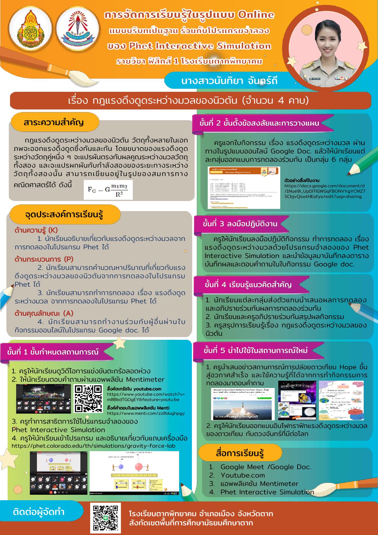 • เข้าร่วมอบรมเชิงปฏิบัติการพัฒนาการจัดการเรียนรู้แบบสืบเสาะด้วยสถานการณ์ปัญหาในชีวิตจริงควบคู่เครื่องมือคำนวณวิทยาศาสตร์ CLASSWIZ เพื่อส่งเสริมสมรรถนะการจัดการเรียนรู้เชิงรุก สำหรับครูฟิสิกส์