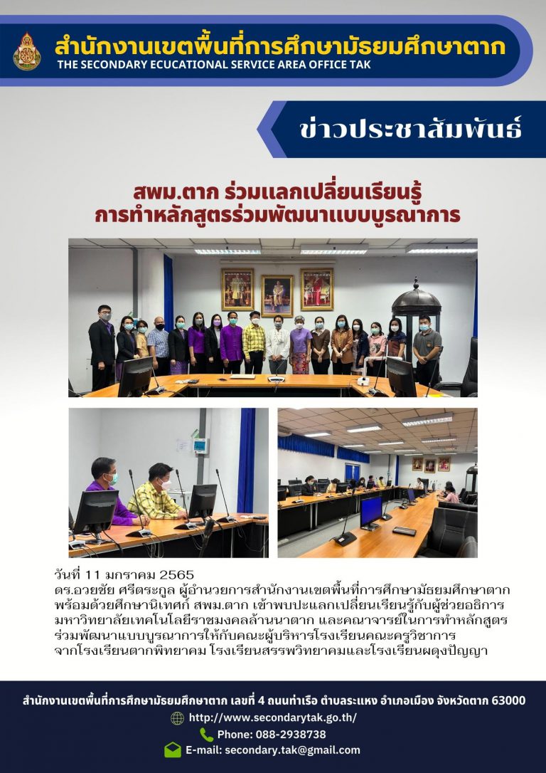 :: สำนักงานเขตพื้นที่การศึกษามัธยมศึกษาตาก :: The Secondary Educational Service Area Office Tak