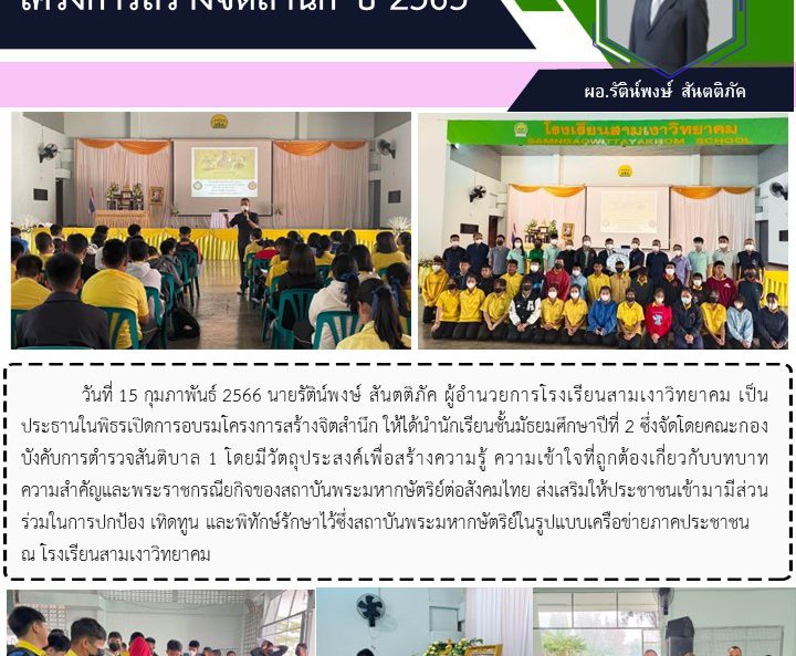 วันที่ 25 กุมภาพันธ์ 2566 นายรัติน์พงษ์ สันตติภัค ผู้อำนวยการโรงเรียนสามเงาวิทยาคม มอบหมายให้งานระบบดูแลช่วยเหลือนักเรียนจัดกิจกรรมประชุมผู้ปกครองนักเรียน ครั้งที่ 2 ประจำปีการศึกษา 2565 ของโรงเรียนสามเงาวิทยาคม เพื่อติดตามผลการเรียนของนักเรียน และการชี้แจงนโยบายเตรียมความพร้อมของการเปิดภาคเรียนใหม่ พร้อมทั้งการทำประชามติของผู้ปกครองเรื่องของระเบียบทรงผมของนักเรียน เพื่อเป็นข้อมูลในการจัดทำระเบียบของโรงเรียนต่อไป