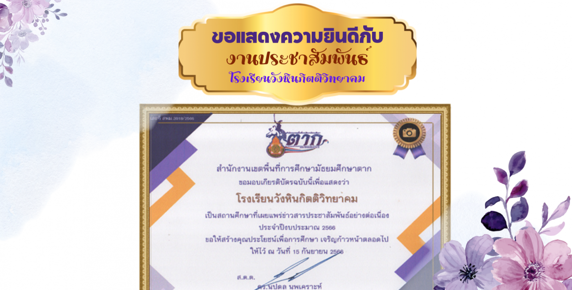 11 ตุลาคม 2567 นายธวัช ยะสุคำ ผู้อำนวยการโรงเรียนวังหินกิตติวิทยาคม ร่วมต้อนรับและแสดงความยินดี กับ นายอาณัติ ผาพรม เนื่องในโอกาสดำรงตำแหน่ง ผู้อำนวยการสำนักงานเขตพื้นที่การศึกษามัรยมศึกษาตาก ณ หอประชุมกาญจนาภิเษก โรงเรียบตากพิทยาคม อำเภอเมืองตาก จังหวัดตาก