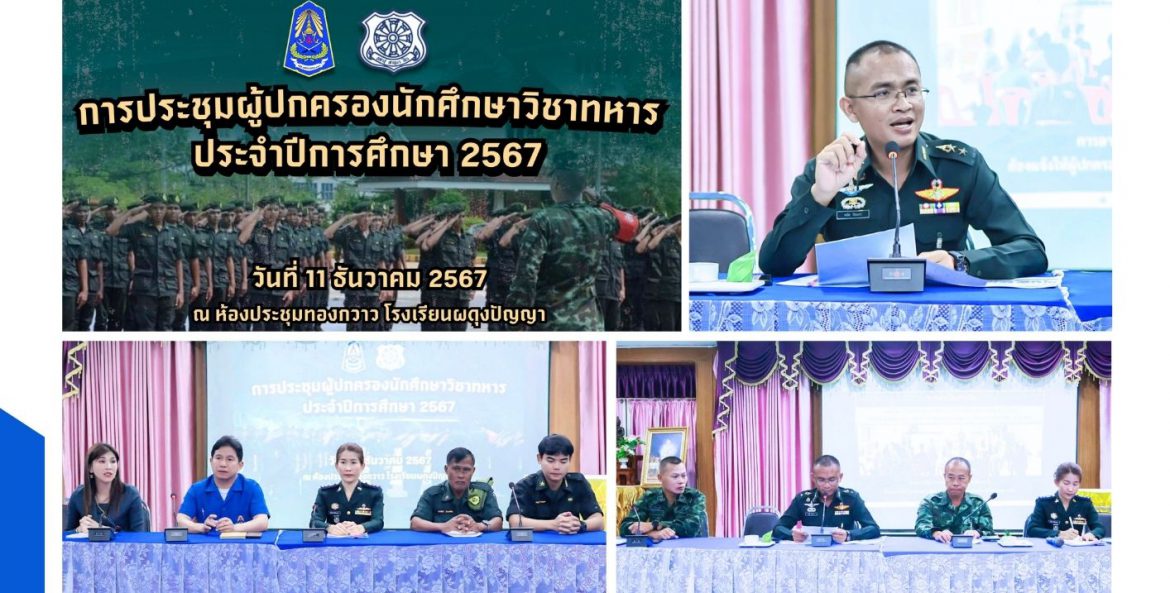 วันที่ 11 ธันวาคม 2567 งานกิจกรรมนักศึกษาวิชาทหาร โรงเรียนผดุงปัญญา ร่วมกับหน่วยฝึกนักศึกษาวิชาทหาร มณฑลทหารบกที่ 310 จัดกิจกรรม การประชุมผู้ปกครองนักศึกษาวิชาทหาร ประจำปีการศึกษา 2567 โดยมี พันโท ดนัย ปินะถา ผบ.นฝ.นศท.มทบ.310 เป็นประธานการประชุม พร้อมด้วยนางสาวสุภัสรีญา ไชยการัณย์กุล นายสมคิด พาวงศ์ รองผู้อำนวยการโรงเรียน คณะผู้กำกับนักศึกษาวิชาทหาร และผู้ปกครอง นักศึกษาวิชาทหาร เข้าร่วมประชุม ณ ห้องประชุมทองกวาว โรงเรียนผดุงปัญญา
