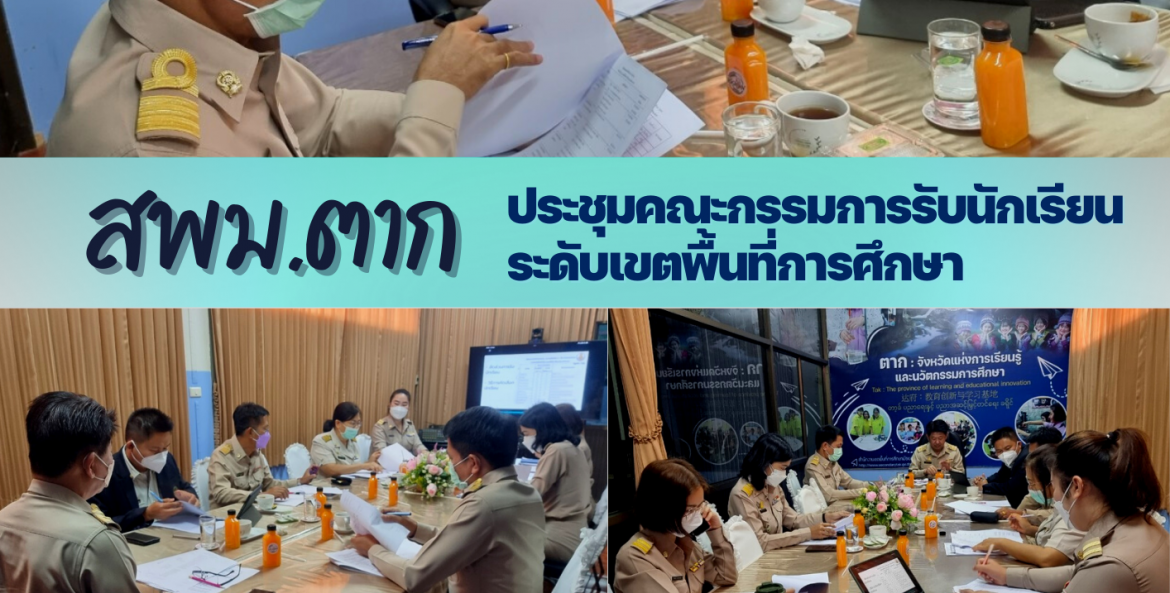 วันที่ 21 กุมภาพันธ์ 2565 ดร.อวยชัย ศรีตระกูล ผอ.สพม.ตาก เป็นประธานคณะกรรมการรับนักเรียนระดับเขตพื้นที่การศึกษา เพื่อพิจารณา กลั่นกรอง ตรวจสอบ เขตพื้นที่บริการของโรงเรียนในสังกัดให้ความเห็นชอบแผนกำรรับนักเรียน จำนวนห้องเรียน จำนวนนักเรียนต่อห้อง คุณสมบัติผู้สมัคร สัดส่วนการรับนักเรียน วิธีการคัดเลือก การรับนักเรียนเงื่อนไขพิเศษนอกเหนือจากที่กล่าว ณ ห้องประชุมลานสาง สำนักงานเขตพื้นที่การศึกษามัธยมศึกษาตาก