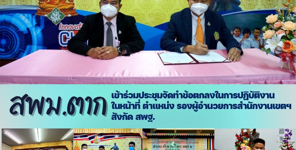 วันที่ 15 กุมภาพันธ์ 2565 นายเอกชัย ใจก๋องแก้ว รอง ผอ.สพม.ตาก ร่วมประชุมจัดทำข้อตกลงในการปฏิบัติงาน ในหน้าที่ ตำแหน่ง รองผู้อำนวยการสำนักงานเขตฯ สังกัด สพฐ. โดยมีนายสุรินทร์ มั่นประสงค์ ประธานกรรมการและผู้ปฏิบัติหน้าที่ผู้ตรวจราชการกลุ่มพื้นที่การศึกษา ประจำเขตตรวจราชการที่ 17 เป็นประธานการประชุม ณ ห้องประชุมมิ่งมณฑล สำนักงานเขตพื้นที่การศึกษาประถมศึกษาพิษณุโลก เขต 1