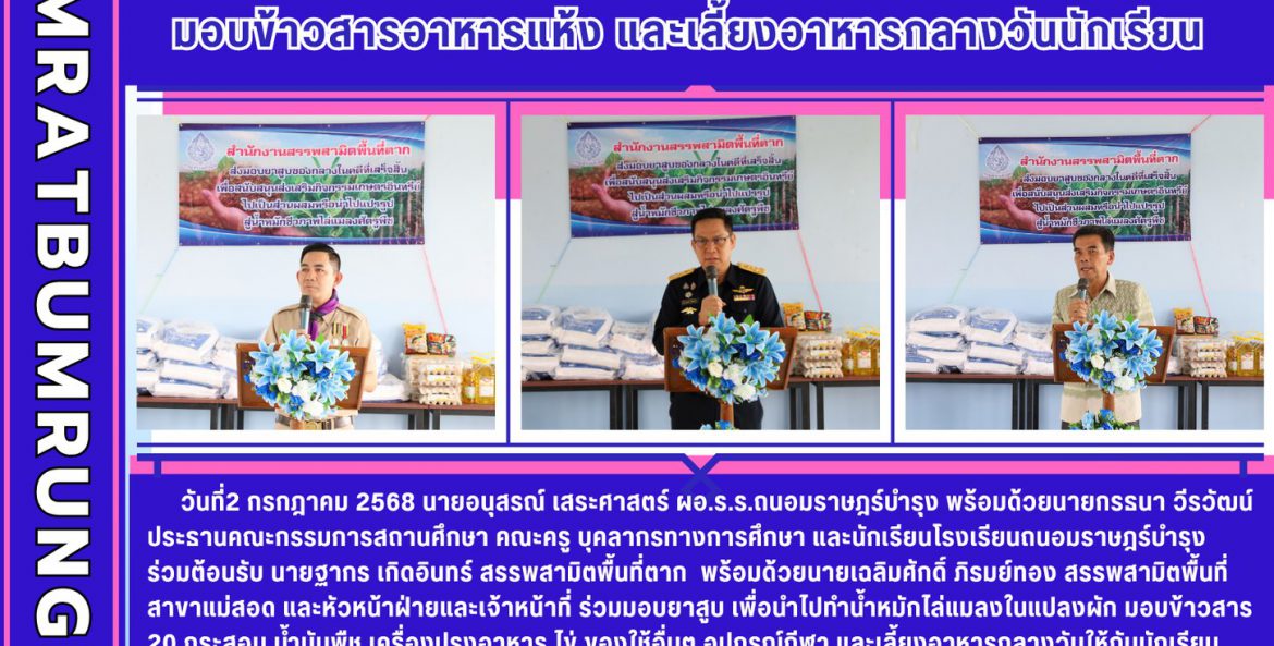 วันศุกร์ที่ 28 พฤศจิกายน 2568 นายอนุสรณ์ เสระศาสตร์ ผู้อำนวยการโรงเรียนถนอมราษฎร์บำรุง มอบโล่รางวัล และเกียรติบัตร ให้กับนักเรียนห้องเรียนกีฬา ผู้ฝึกสอน โค้ช ได้รับรางวัลชนะเลิศ ฟุตบอล 7 คน มหกรรมวิชาการ บนฐานทักษะ และนวัตกรรม วิทยาลัยนอร์ทเทิร์นตาก ครั้งที่ 2 ประจำปี 2568 พร้อมกล่าวชื่นชม และ ให้กำลังใจนักกีฬาที่ได้สร้างชื่อเสียงให้กับโรงเรียน