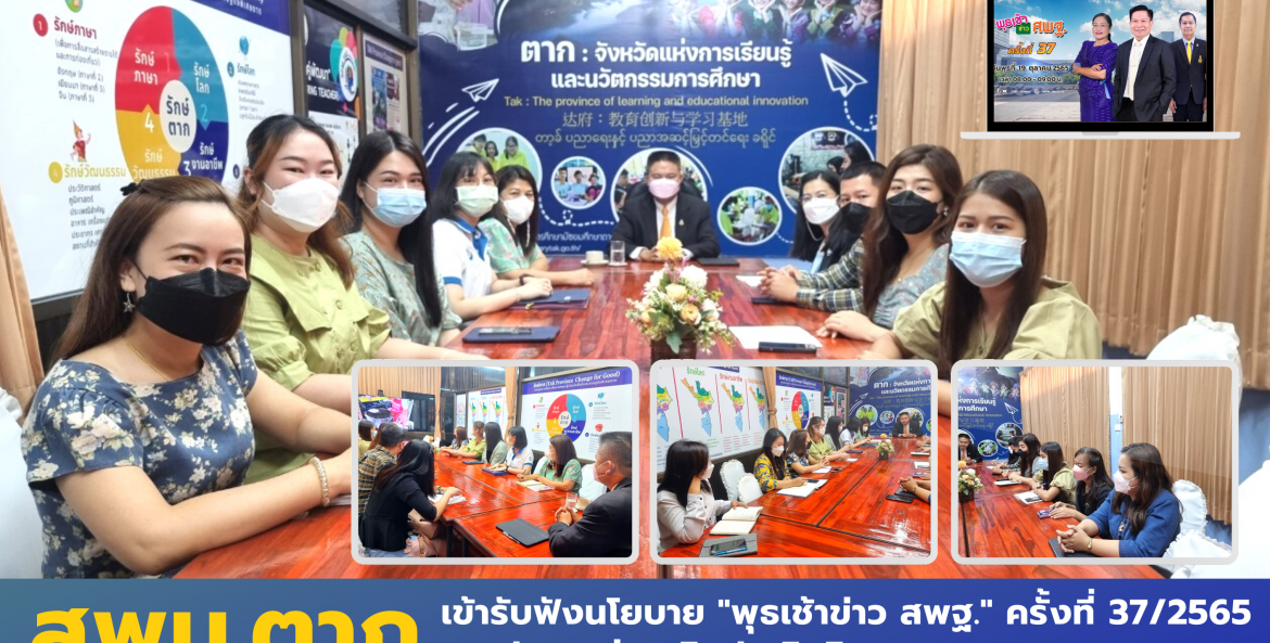 วันที่ 19 ตุลาคม 2565 ส.ต.ต. ดร.นปดล นพเคราะห์ ผอ.สพม.ตาก มอบหมายให้ นายเอกชัย ใจก๋องแก้ว รอง ผอ.สพม.ตาก พร้อมด้วย ผอ.กลุ่มงาน และบุคลากร ร่วมรับฟังนโยบาย ของ สพฐ. ในรายการ “พุธเช้า–ข่าวสพฐ.” ครั้งที่ 37/2565 ผ่านระบบออนไลน์ และ และประชุมส่งเสริมประสิทธิภาพ สพม.ตาก ณ ห้องประชุมลานสาง สพม.ตาก