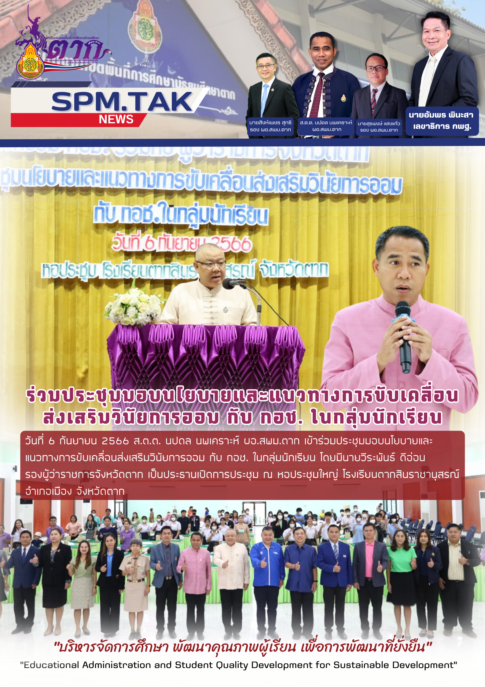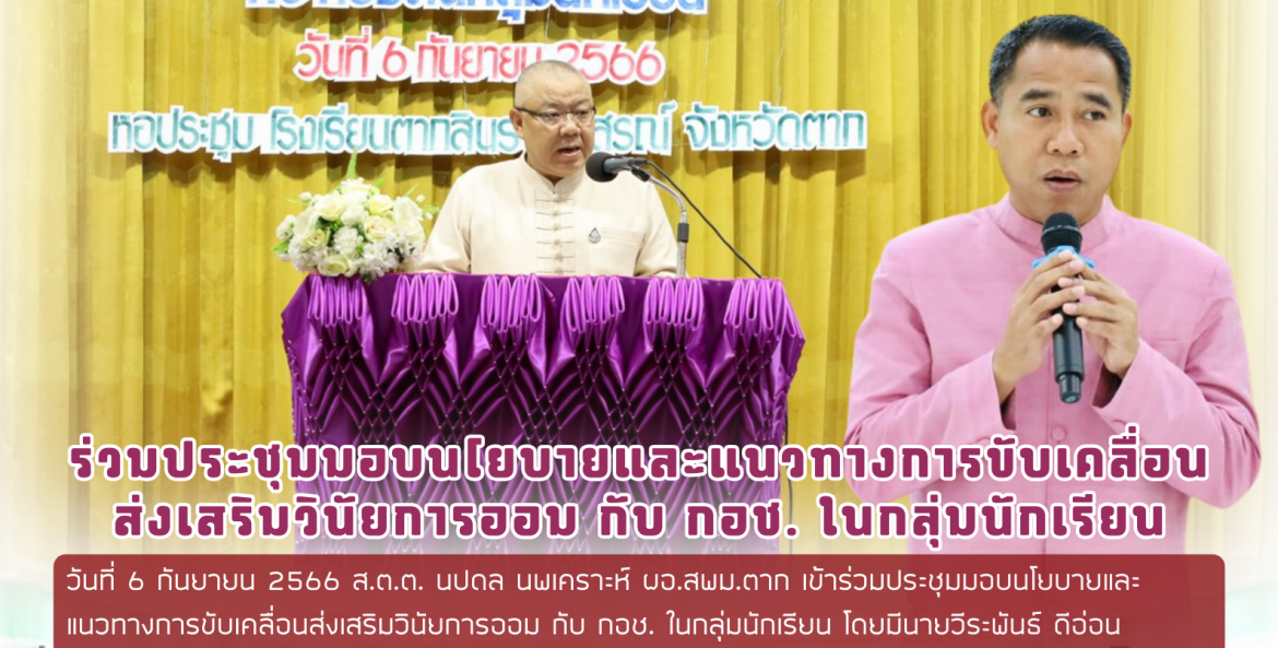 วันที่ 6 กันยายน 2566 ส.ต.ต. นปดล นพเคราะห์ ผอ.สพม.ตาก เข้าร่วมประชุมมอบนโยบายและ แนวทางการขับเคลื่อนส่งเสริมวินัยการออม กับ กอช. ในกลุ่มนักเรียน โดยมีนายวีระพันธ์ ดีอ่อน รองผู้ว่าราชการจังหวัดตาก เป็นประธานเปิดการประชุม ณ หอประชุมใหญ่ โรงเรียนตากสินราชานุสรณ์ อำเภอเมือง จังหวัดตาก ขอบคุณภาพจาก รร ถนอมราษฎร์บำรุง