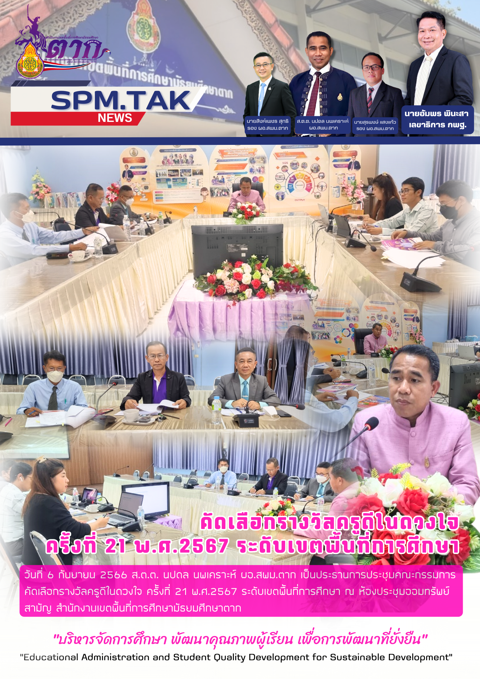 คัดเลือกรางวัลครูดีในดวงใจ ครั้งที่ 21 พ.ศ.2567 ระดับเขตพื้นที่การศึกษา วรวุฒิ เนื้อนิ่ม 7 กันยายน 2566 วันที่ 6 กันยายน 2566 ส.ต.ต. นปดล นพเคราะห์ ผอ.สพม.ตาก เป็นประธานการประชุมคณะกรรมการคัดเลือกรางวัลครูดีในดวงใจ ครั้งที่ 21 พ.ศ.2567 ระดับเขตพื้นที่การศึกษา ณ ห้องประชุมออมทรัพย์ สามัญ สำนักงานเขตพื้นที่การศึกษามัธยมศึกษาตาก จำนวนคนดู 11