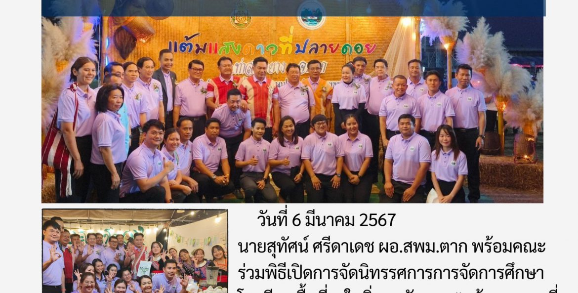 วันที่ 6 มีนาคม 2567นายสุทัศน์ ศรีดาเดช ผอ.สพม.ตาก พร้อมคณะร่วมพิธีเปิดการจัดนิทัศการการจัดการศึกษาโรงเรียนพื้นที่สูงในถิ่นทุรกันดาร “แต้มแสงดาวที่ปลายดอย” ประจำปีการศึกษา 2566 ณ สนามกีฬาเทศบาลแม่ต้าน อ.ท่าสองยาง จ.ตาก โดยมีนายบุญรักษ์ ยอดเพชร อดีตเลขาธิการ กพฐ. ให้เกียรติเป็นประธานในพิธีเปิด