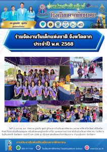 วันที่ 11 มกราคม พ.ศ. 2568 ดร.ภูธนภัส พุ่มไม้ ผู้อำนวยการโรงเรียนตากพิทยาคม มอบหมายให้นายวิทธวัฒน์ ศรีจันทร์ตา หัวหน้ากิจกรรมโรงเรียนและชุมชน พร้อมด้วยคณะครูฝ่ายบริหารทั่วไป และคณะกรรมการสภานักเรียนโรงเรียนตากพิทยาคม ร่วมจัดงานวันเด็กแห่งชาติ จังหวัดตาก ประจำปี พ.ศ. 2568 ณ บริเวณศาลสมเด็จพระเจ้าตากสินมหาราช อำเภอเมืองตาก จังหวัดตาก