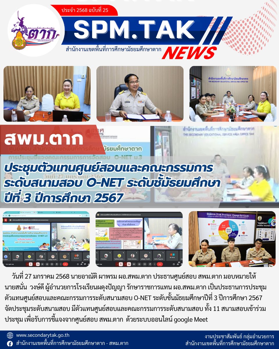สพม.ตาก ประชุมตัวแทนศูนย์สอบและคณะกรรมการ ระดับสนามสอบ O-NET ระดับชั้ม้รยมศึกษา ปีที่ 3 ปีการศึกษา 2567 วรวุฒิ เนื้อนิ่ม 27 มกราคม 2568 จำนวนคนดู 1
