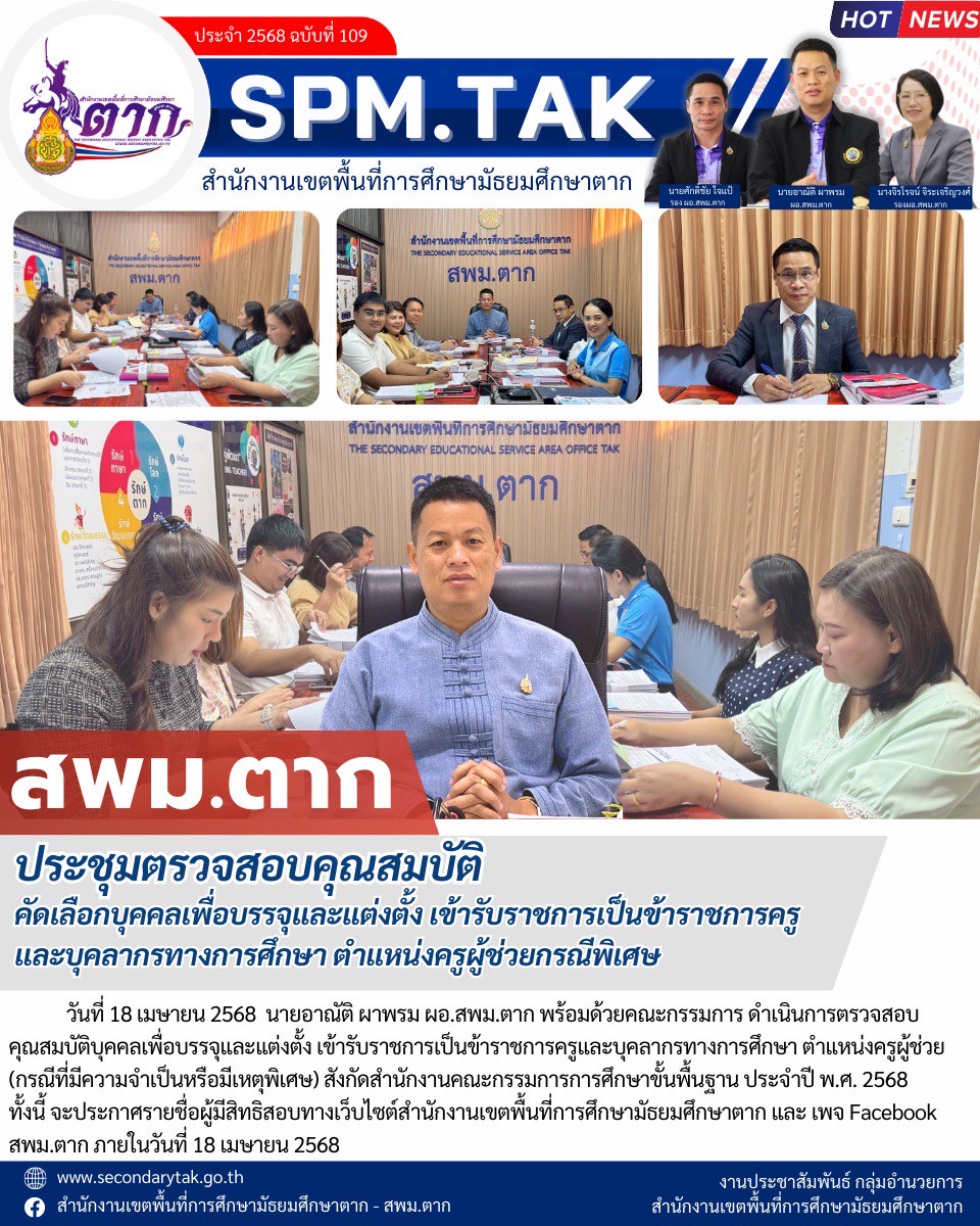 ประชุมตรวจสอบคุณสมบัติ คัดเลือกบุคคลเพื่อบรรจุและแต่งตั้ง เข้ารับราชการเป็นข้าราชการครู และบุคลากรทางการศึกษา ตำแหน่งครผู้ช่วยกรณีพิเศษ วรวุฒิ เนื้อนิ่ม 18 เมษายน 2568 จำนวนคนดู 3