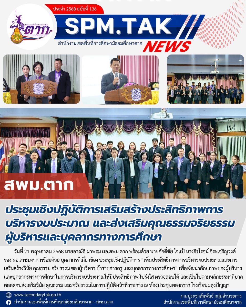 ประชุมเชิงปฏิบัติการเสริมสร้างประสิทธิภาพการ บริหารงบประมาณ และส่งเสริมคุณธรรรมจริยธรรม ผู้บริหารและบุคลากรทางการศึกษา วรวุฒิ เนื้อนิ่ม 22 พฤษภาคม 2568 จำนวนคนดู 7