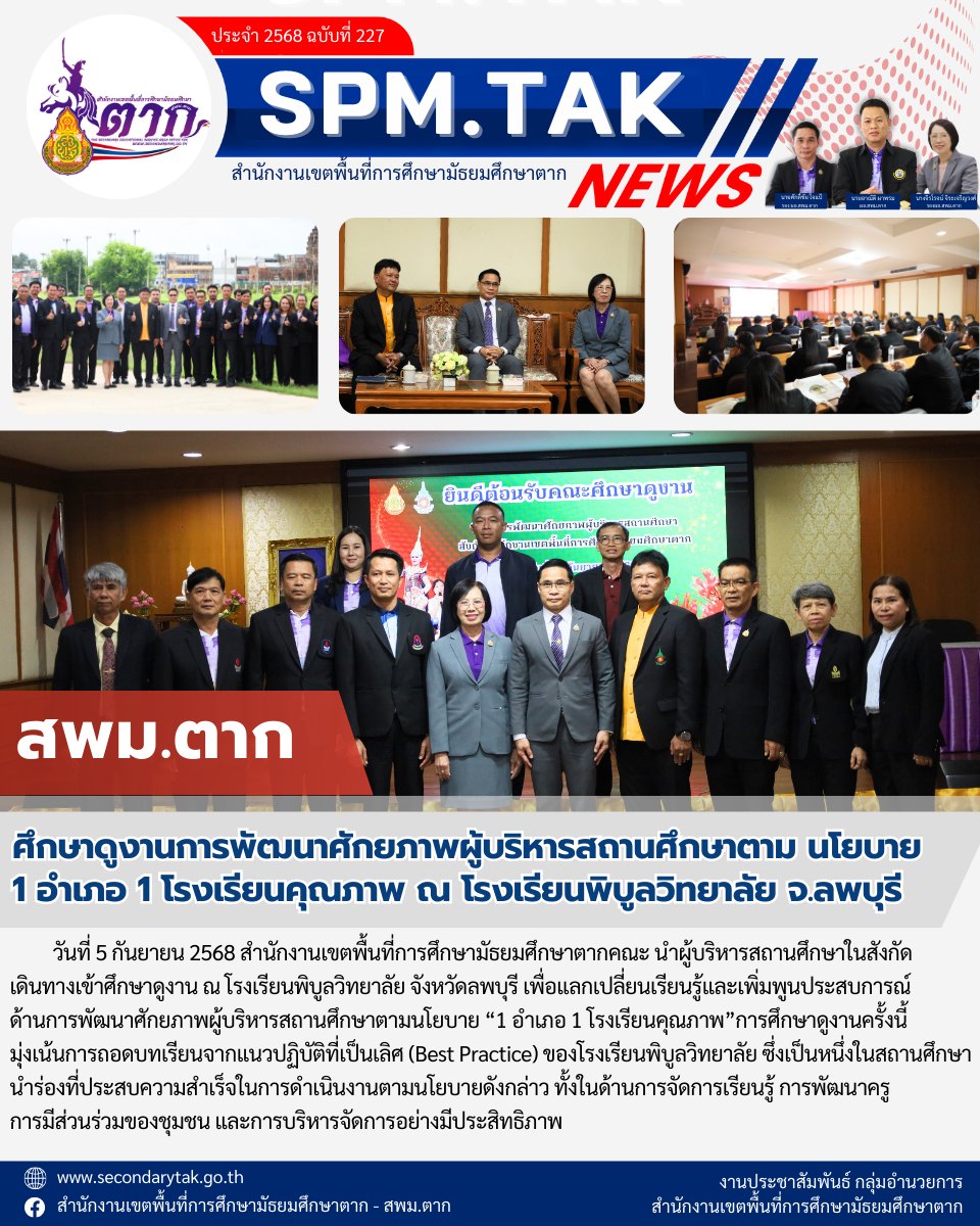 ศึกษาดูงานการพัฒนาศักยภาพผู้บริหารสถานศึกษาตาม นโยบาย 1 อำเภอ 1 โรงเรียนคุณภาพ ณ โรงเรียนพิบูลวิทยาลัย จ.ลพบุรี วรวุฒิ เนื้อนิ่ม 6 กันยายน 2568 จำนวนคนดู 0